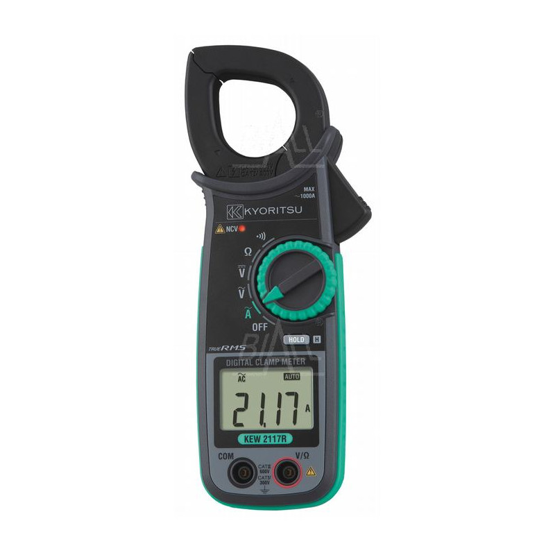 Kyoritsu KEW 2117R - 1000A ACA TrueRMS z rozdzielczością 0,01A na zakresie 60A, automatyczna zmiana zakresów, cęgi 33mm, 60/600ACV i DCV, rezystancja do 600kΩ, test ciągłości oraz bezdotykowe wykrywanie napięcia