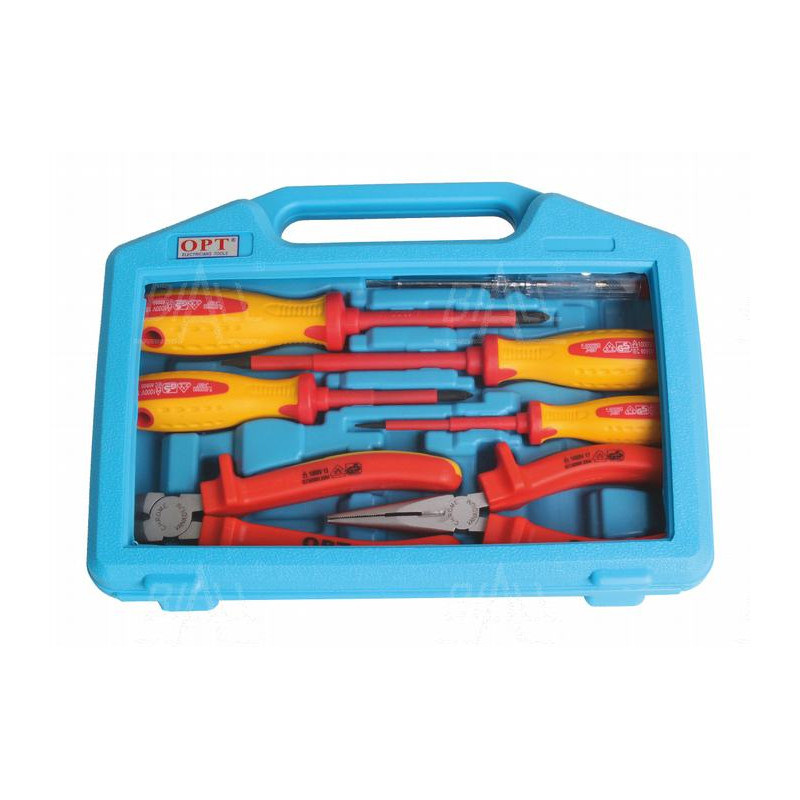 Zestaw narzędzi izolowanych z próbnikiem napięcia (120-250V), w walizce.