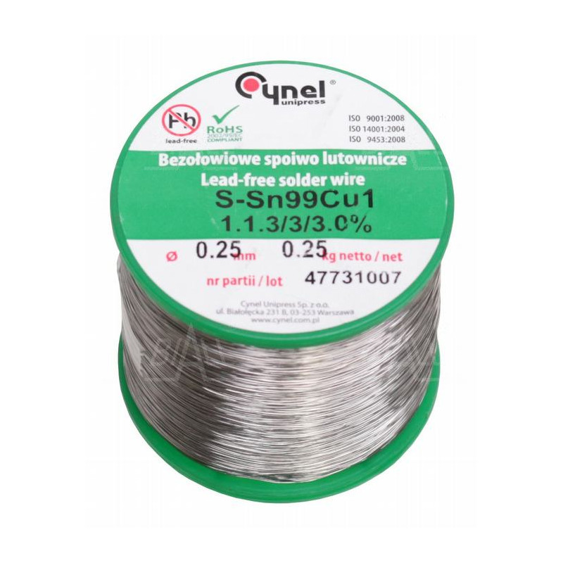 Cyna-spoiwo SN99C 0.25/0.25 Sn99,3Cu0,7 0.25mm/0.25kg Cynel