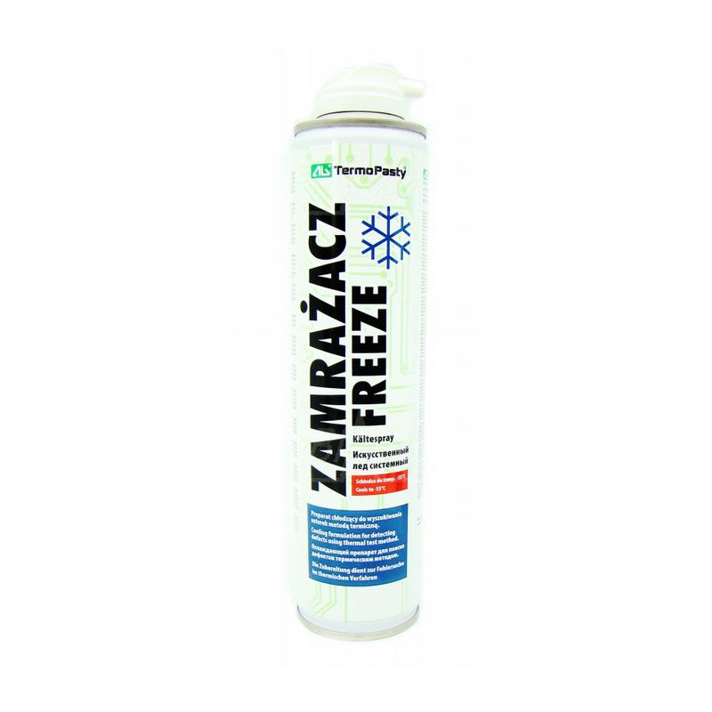 Preparat przeznaczony do wyszukiwania usterek metodą termiczną. Środek powoduje szybkie ochłodzenie do temperatury 55°C i pozwala na miejscowe oziębienie podzespołów, przez co doskonale nadaje się do wyszukiwania zimnych lutów i mikropęknięć obwodów drukowanych. Produkt chemicznie czysty, nietoksyczny i obojętny względem większości materiałów.