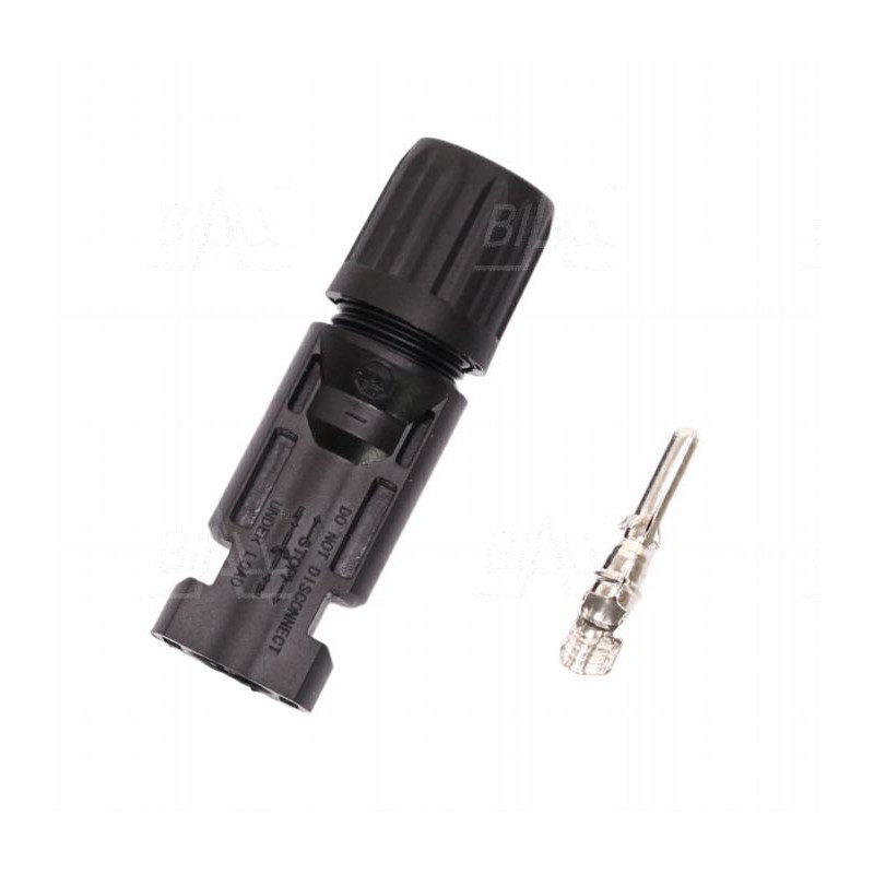 Dobrej jakości wtyk w pełni kompatybilny z MC4 na kabel solarny 4/6mm2 w atrakcyjnej cenie. Prąd roboczy 30A. Stopnień ochrony IP68. Rezystancja złącza (wtyk/gniazdo) <0,25mΩ Atest TÜV, UL. W ofercie także złącza MC4 panelowe, trójniki MC4 i zaślepki.